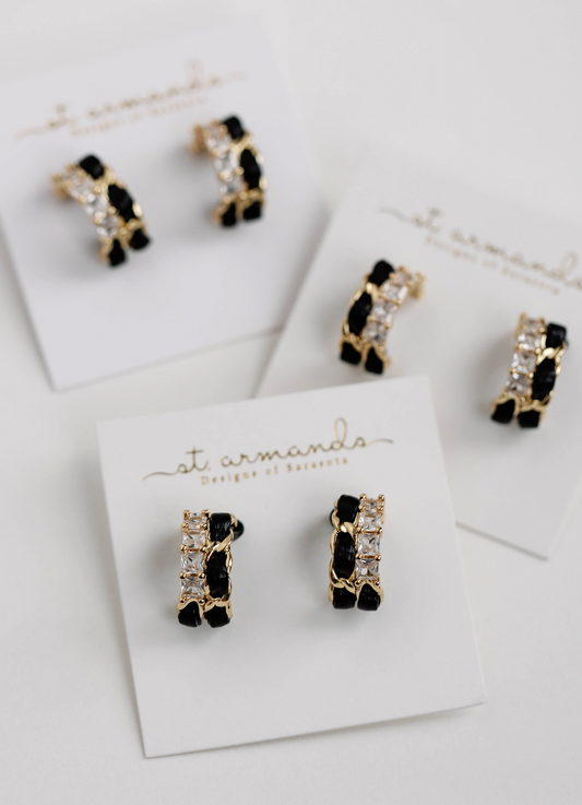 Black Vintage Chain Wrapped Leather Statement Hoop Earrings