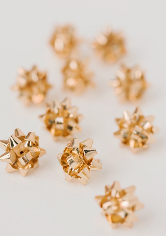 Gold Christmas Present Bow Holiday Earrings