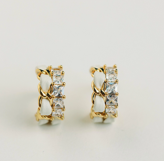 Vintage Chain Wrapped Leather Statement Hoop Earrings