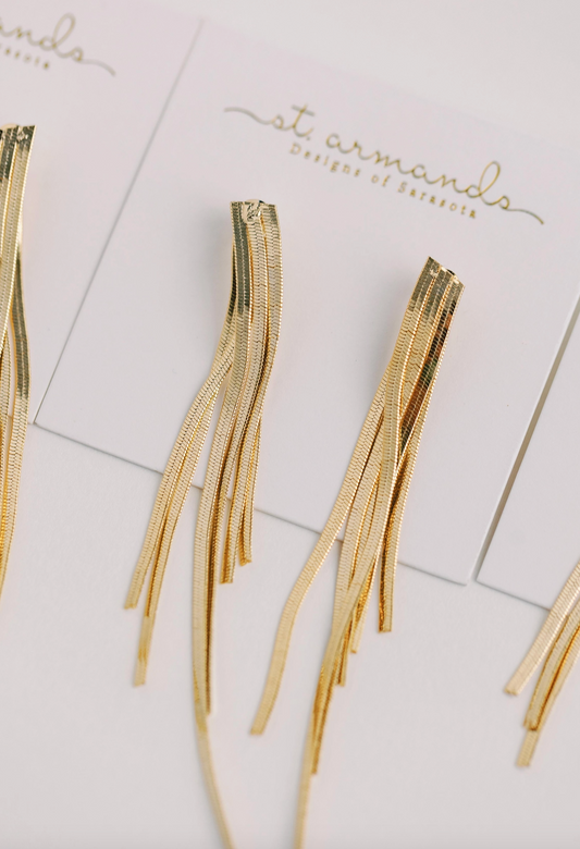 Skinny Gold Cascading Tassel Minimalist Statement Earrings