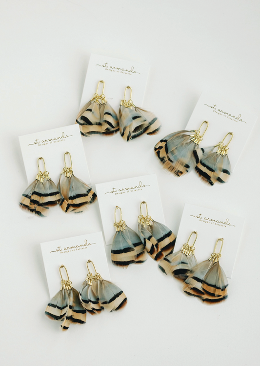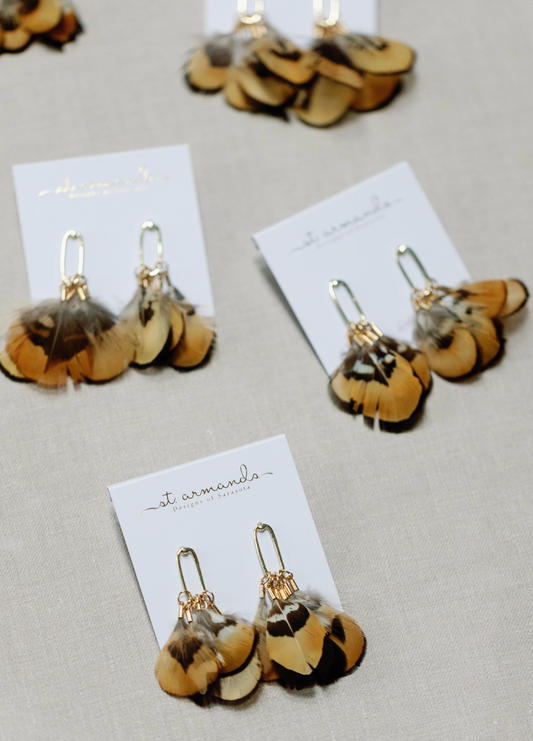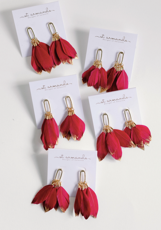 Garnet Gold Dipped Fall Feather Statement Earrings