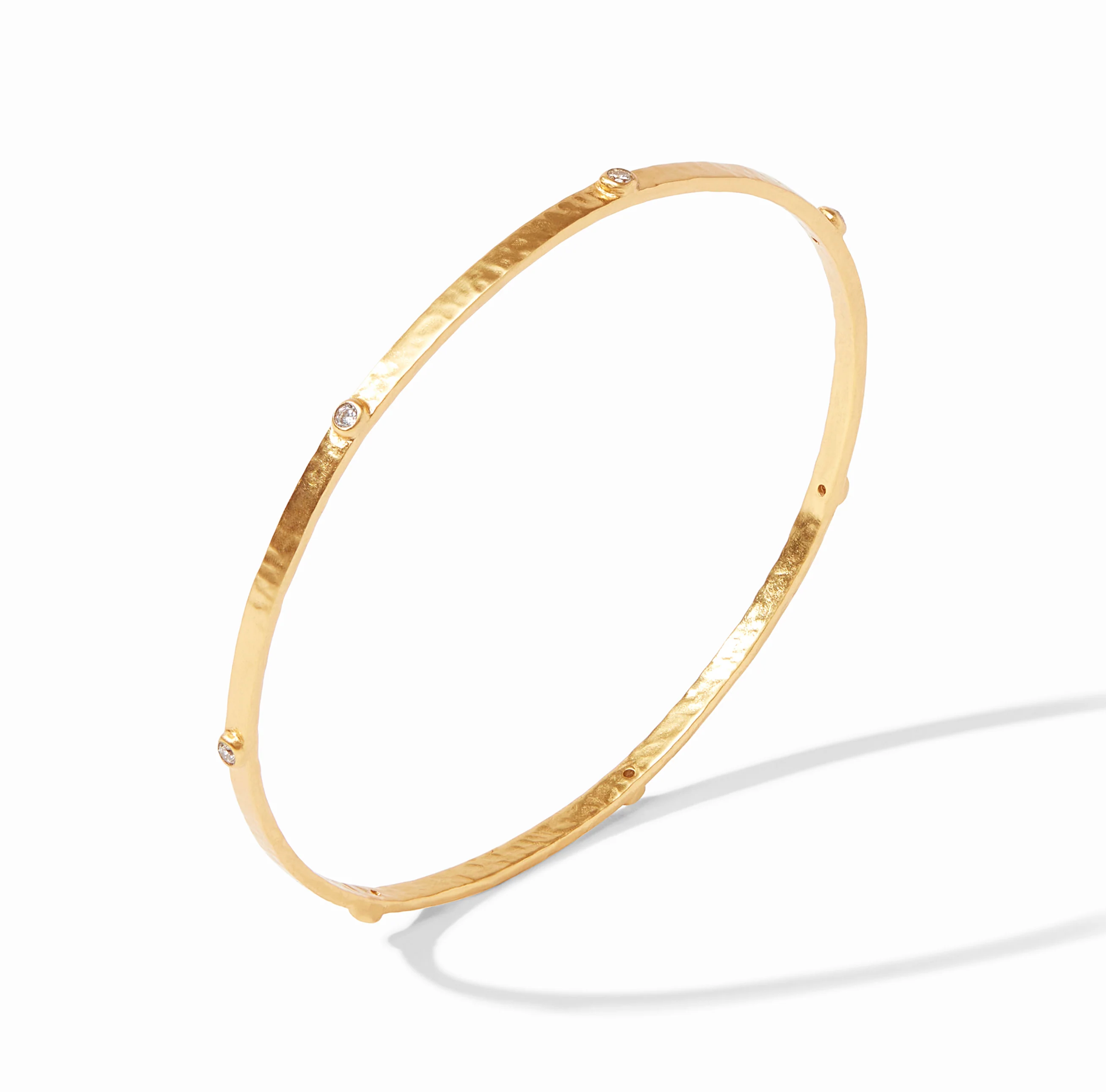 Lightly hammered bangle with gemstone stations.